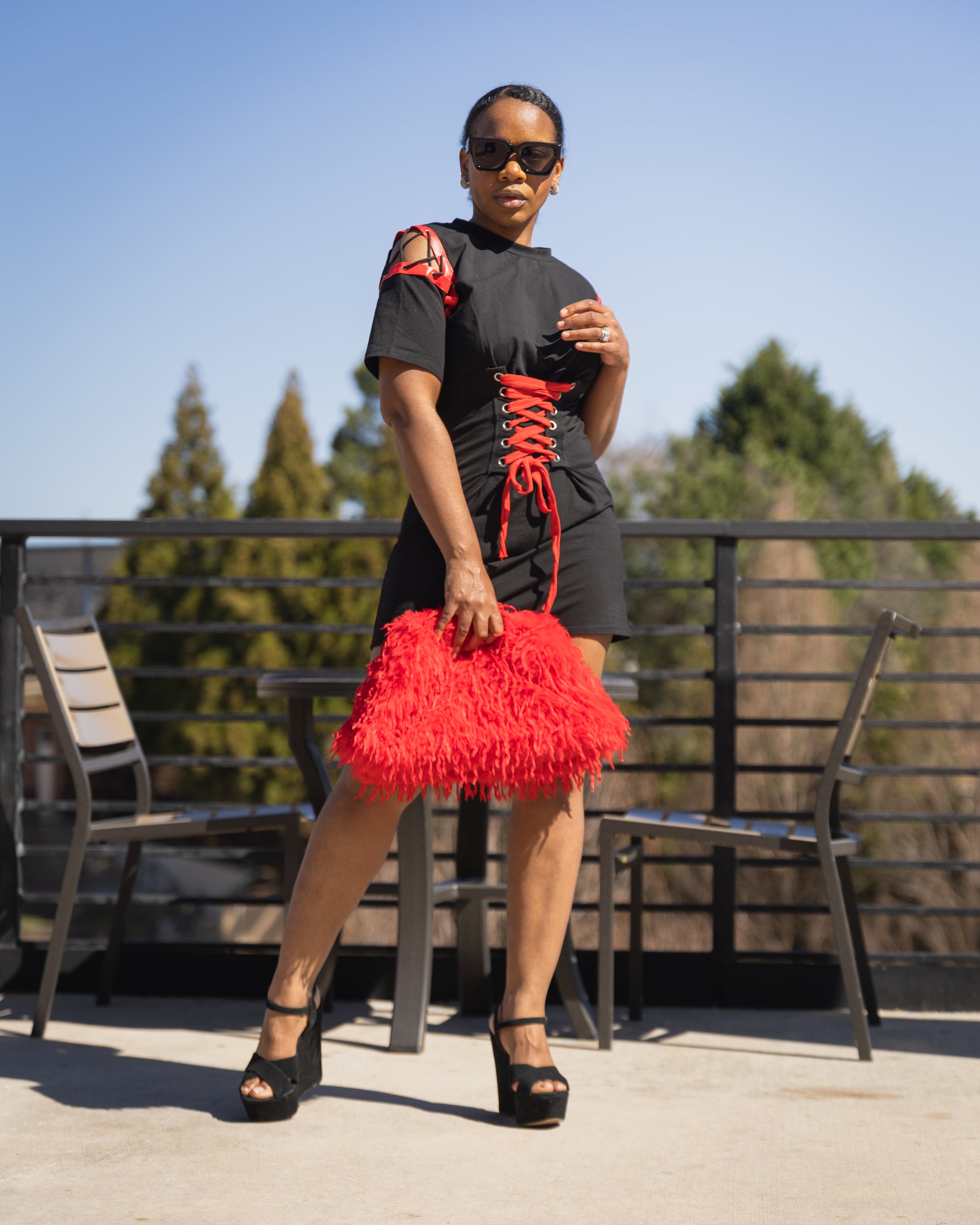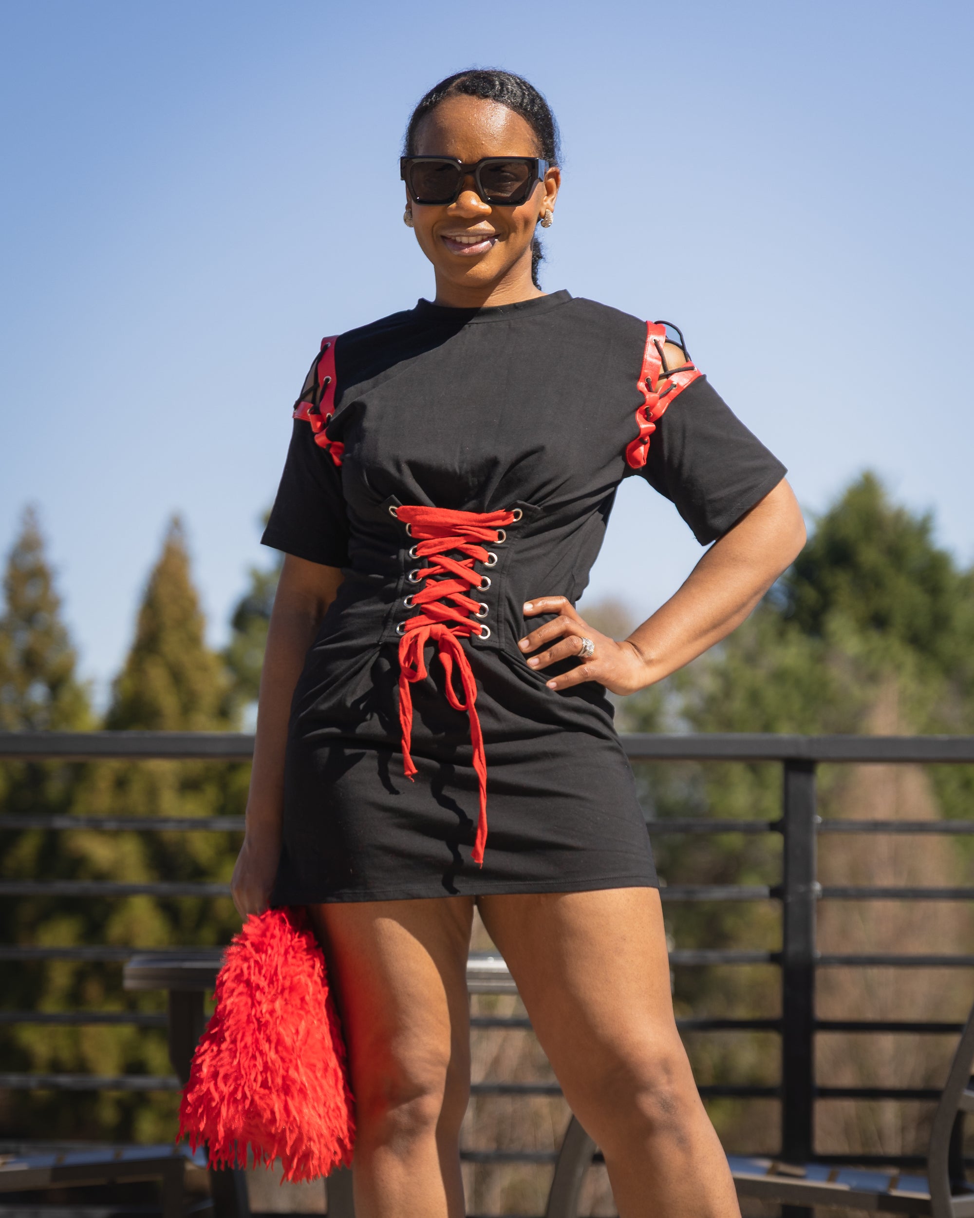The standout feature of this dress is the eye-catching cage tie detail at the front, which adds structure and flair, making it a perfect blend of casual and trendy. Dress up with a jacket heels and accessories or keep it casual with sneakers for a laid-back, street-style vibe.