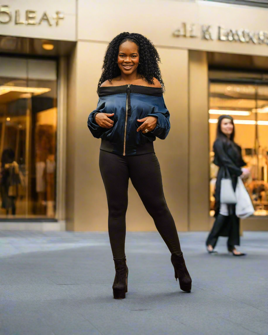 Elevate your street style with our chic Off-Shoulder Bomber Jacket. This bold, contemporary piece combines the edgy flair of a classic bomber with the feminine touch of an off-shoulder design, creating a versatile look that's perfect for any fashion-forward wardrobe. Crafted from a high-quality blend of soft cotton and durable polyester, the jacket provides warmth and comfort without sacrificing style.